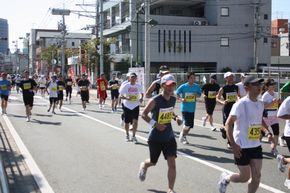 多くの人々が走ってる その道路に沿って